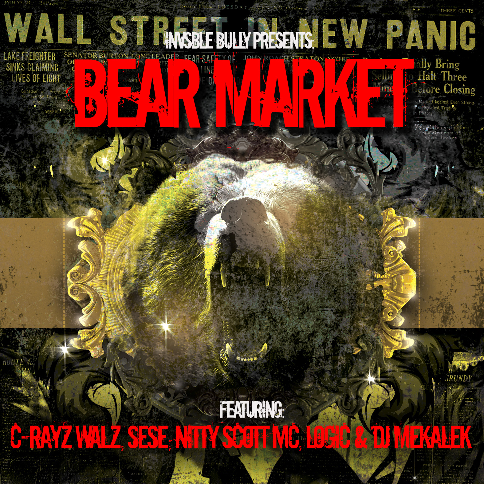 Invsble Bully is pleased to announce their first single “Bear Marketâ€. Bear Market is a quintessential cypher track. Five different artists from five different circles came together to create something beautiful and organically hip-hop. The song features C-Rayz Walz (Former Definitive Jux artist, Coach on MTV’s Made), Sese (MuchMusic Rap City Battle Champion, Your Favorite Rappers Worst Nightmare mixtape series), Nitty Scott MC (BET HIP–HOP AWARDS ‘11 Cypher participant, Source Magazine “Unsigned Hypeâ€), Logic (up and coming artist from Maryland, Young Sinatra Mixtape) and DJ Mekalek of Time Machine. This song is the first release from the “Invsble Bully Projectâ€; which will be a collaborative effort of 100 independent artists. The Invsble Bully Project is produced by Illmortal Productions. Executive produced by Adrian “Audio†Hamblin and Derrick “Aaah†Bramble. The song was released October 21, 2011 online. It can be found at invsblebullybearmarket.viinyl.com or on Hulkshare.