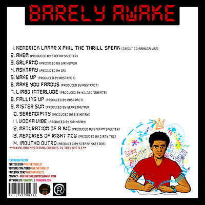 Phil The Thrill releases his long awaited album, Barely Awake. Barely Awake features production from a lot of talented up and coming producers. Barely Awake covers multiple topics such as love, suicide, reflection on life and many more. If you have never heard of Phil The Thrill, this is the perfect way to not only get to know who is Phil The Thrill (the artist) but Phil Frazier (the man).